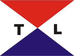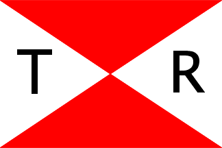 white plus black initials ‘T’ and ‘R’ in the white fields, respectively