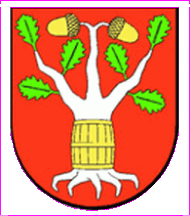 Arms; "on a red field a silver (white) oak tree with a golden (yellow) barrel on the trunk. Acorns are yellow, leaves are green."