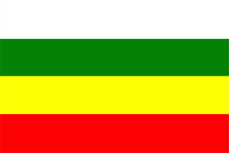 Flag:" a rectangle composed of four equal horizontal stripes: white-green-yellow-red.