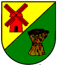 Coat of Arms: per bend sinister or a windmill gules; vert a cornsheaf or.