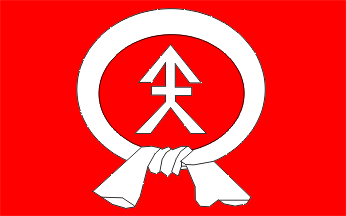 Flagdescription: red with the image of the communal arms in center.