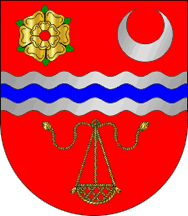Keywords: caldas da rainha | coat of arms: bordure | shrimp catcher | pelican (golden) | crown: open | coto | crescent: pints up | rose (yellow) | waves: 3 |