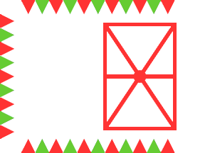 green triangles alongside three sides of the flag (upper, lower and fly).