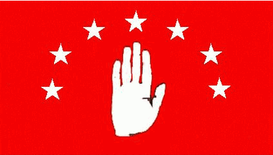 the white palm of the hand surmounted by an arc of seven white,