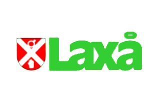 Outside Link:The flag of the commune of Laxå is rectangular, white with logo. The logo