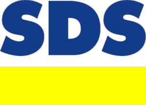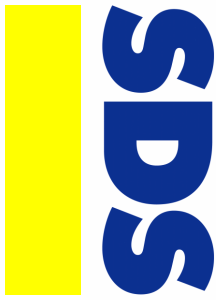 The sign of SDS is the SDS logotype. The letters of the SDS abbreviation are blue (HKS43), below them is a yellow (HKS3) line of the same length as the letters and of height two thirds that of the letters.