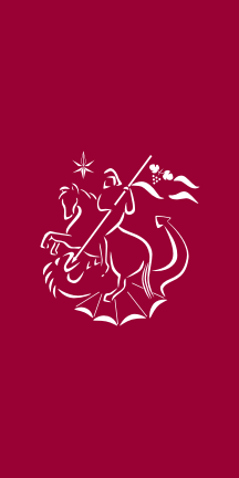 The colour red of the emblem and the flag is prescribed as Pantone 704c.