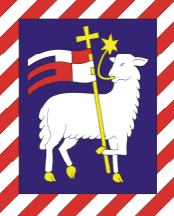 in a shield, in which a silver [white] lambkin facing to the left can be