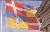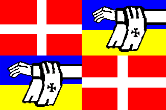 quarter is divided per fess blue over golden (=yellow). In the centre