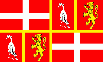 It is a quarterly divided rectangular flag with ratio estimated 3:5. All the