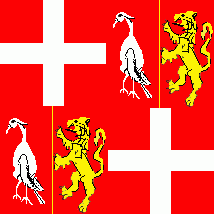 Greek cross in a red field of the Order of St. John. The 2nd and 3rd quarter are