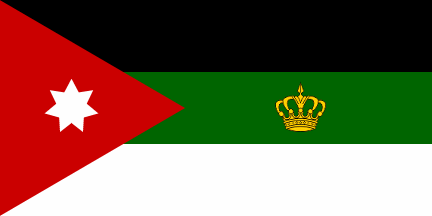 It is thought that King Faysal used the same flag with a royal crown in the middle of the central stripe. Original source: [Musa 1987, royal flag illustrated on p. 271.