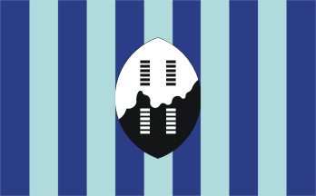The flag has eleven alternating equal dark and light blue stripes with a Swazi