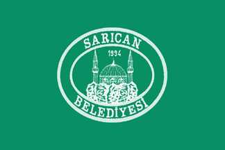 The flag of Sarıcan (photo) is green with the municipal emblem in the middle. "SARICAN BELEDİYESİ" means "Sarıcan Municipality".