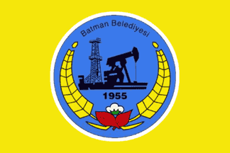 The flag of Batman (photo) is yellow with the municipality's emblem in the middle. "BATMAN BELEDİYESİ" means "Batman Municipality".