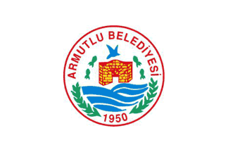 The flag of Armutlu (photo) is white with the municipality's emblem in the middle. "ARMUTLU BELEDİYESİ" means "Armutlu Municipality".