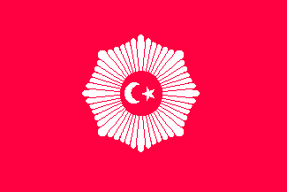 The naval flag of the Sultan was pink with a kind of star in the center (similar to that of Emirate of Afghanistan), with the white moon crescent and the star (five points) in the interior. The flag of the Imperial retinue was similar to the naval flag but swallow-tailed.