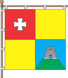 into 4 identical square fields, in top from a staff red is a