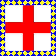 of the gonfalon have a dark blue edging with yellow squares.