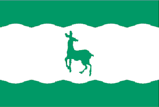 tierced in wave pale and per bend by vert, argent and vert. In an