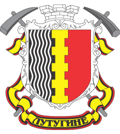 Flag of Lutugine (Lutugino) in Lugansk oblast, Ukraine.