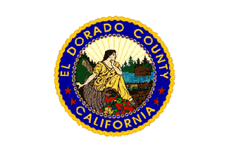 The flag of the El Dorado County, California, consists of county seal on a white background. Photo of the flag can be seen here: www.co.el-dorado.ca.us/PhotoAlbum/LargePhotos/L_SealFlag.jpg.