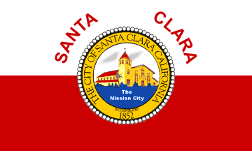 It should be noted that the flag shows also arched red lettering "Santa Clara" far above the shield, set in sans serif capitals, and that the seal as used on the flag (or at least in the mentioned source image) is different from