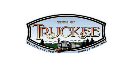 The flag of the Town of Truckee in California, USA, is white with the town logo in the center and can be seen behind the councilors on the photos here www.townoftruckee.com/council.html.