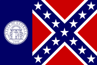 Act approved Oct. 17, 1879, 1878-1879 Georgia Laws 114 (adopting state flag consisting of blue vertical stripe in hoist and the confederate stars and bars, three red-white-red horizontal stripes), repealed and re-enacted by Act approved Aug. 22, 1905, sec. 85, 1905 Georgia Laws 133, 162 (reorganizing state military forces and adding state seal to flag's blue vertical stripe) (effective Oct. 1, 1905), modified by Act approved Aug. 17, 1914, 1914 Georgia Laws 1247 (changing date in state seal from 1799 to 1776), repealed and re-enacted by Act approved Aug. 21, 1916, sec. 3, para. 60, 1916 Georgia Laws 158, 177 (reorganizing state military forces and including description of flag), repealed and re-enacted by Georgia Military Forces Reorganization Act of 1951, sec. 43, 1951 Ga. Laws 311, 346 (reorganizing state military forces and including description of flag), repealed and re-enacted by Georgia Military Forces Reorganization Act of 1955, sec. 43, 1955 Georgia Laws 10, 113 (reorganizing state military forces and including description of flag), amended by Act approved Feb. 13, 1956, 1956 Ga. Laws 38 (changing stars-and-bars in flag design to so-called confederate battle flag) (effective July 1, 1956) (codified in part at Georgia Code Ann. sec. 50-3-1 (1994)).
