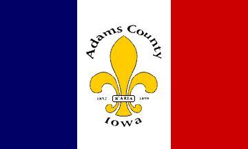 Back in 2002, the Iowa State Association of Counties website hosted an account of each county's history, signed by its County Recorder, and illustrated with a black and white flag image. It is not clear whether these flag images were provided by the county administration or not. An archived copy of the page about Adams County is still at web.archive.org.