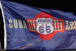 This link: cubamomurals.com/wordpress/?p=2096 shows the City of Cuba, Missouri, 150th Anniversary flag.