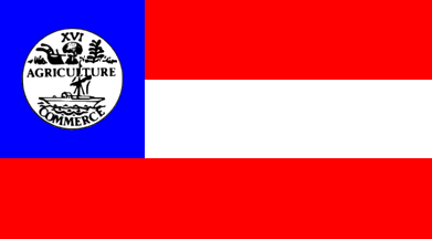 This flag was not actually adopted as a State flag. No flag was adopted in 1861, but a flag of this style was proposed in the General Assembly (our legislature) and some of similar style were used as regimental flags.
