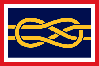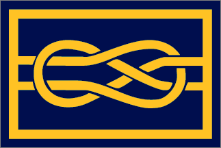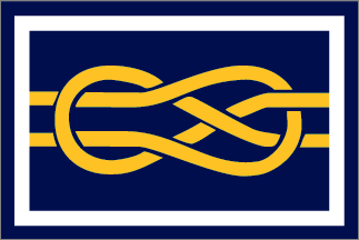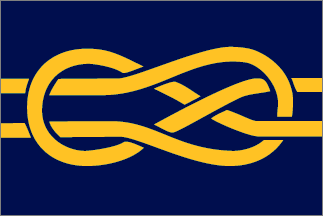 On a blue field, extending horizontally from hoist to fly, two yellow halyards forming two interlaced loops.