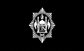 Keywords: mosque (white) | mihrab (white) | minbar (white) | pulpit (white) | flags: 2 (white) | swords: 2 (crossed) | headgear: shako (white) | star: 8 points (faceted) | oval (black) |