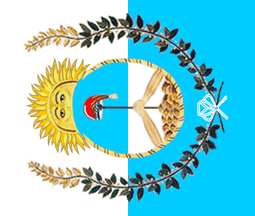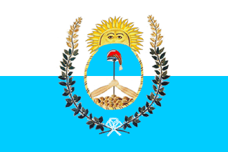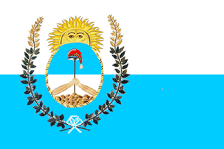 The provincial flag of Mendoza is raised in the same way; Two vertical stripes, white at the hoist and blue at the fly with the arms side way with the crest of the sun pointing the hoist.