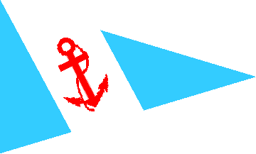 with a red fouled anchor placed in diagonal in the white stripe.