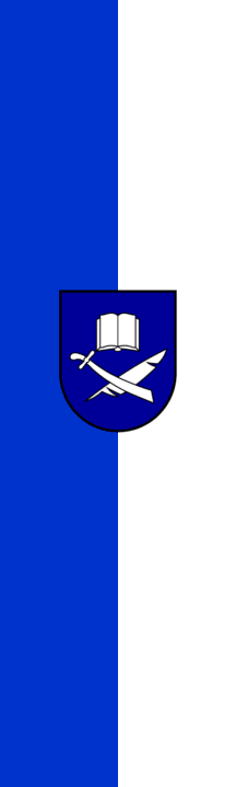 | Description of arms (German): | In Blau ein silberner Türkensäbel gekreuzt mit einer silbernen Gänsefeder, darüber ein silbernes aufgeschlagenes Buch. [1] |