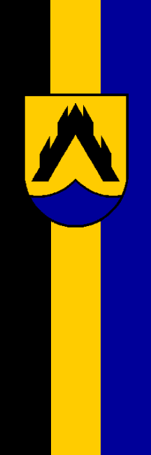 | Description of flag: | three stripes, black-yellow-blue, with coat-of-arms |