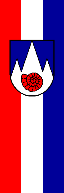 | Description of arms (German): | In Blau drei silberne Spitzen, deren mittlere bis zum Schildrand reicht, darin ein roter Ammonit. |