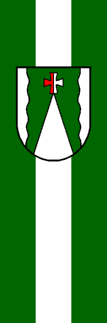 | Description of arms (German): | Zwischen zwei silbernen Wellenflanken in Grün eine silberne Spitze, besteckt mit einem von Rot und Silber gespaltenen, ungleicharmigen Tatzenkreuz. |