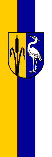 | Description of arms (German): | Gespalten; rechts in Gold ein schwarzer Rohrkolben, links in Blau ein silberner Reiher. |