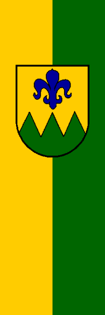 | Description of arms (German): | In Gold über drei grünen, vom Schildfuß aufsteigenden Spitzen eine blaue, heraldische Lilie. |