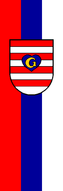 | Description of arms (German): | Von Rot und Silber siebenmal geteilt; in der Mitte ein blaues herzförmiges Schildchen, belegt mit dem goldenen Antiqua-Versalbuchstaben G. |
