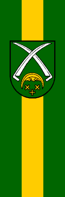 | Description of flag: | three stripes, green-yellow-green, with coat-of-arms |
