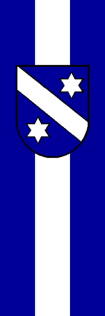 | Description of arms (German): | In Blau ein silberner Schrägbalken, begleitet von zwei silbernen, sechsstrahligen Sternen. |