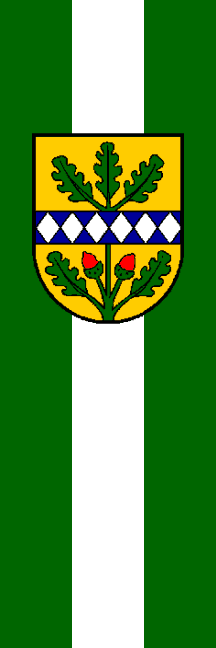 | Description of arms (German): | In Gold ein grüner, aus dem Schildfuß wachsender Eichenzweig, der von einem blauen Balken mit darin stehenden, silbernen Rauten so überdeckt wird, daß oben drei Blätter und unten zwei Blätter und darüber zwei rote Eicheln sichtbar sind. |