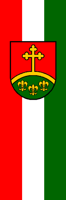 | Description of arms (German): | In Rot auf grünem, von einer goldenen Leiste gesäumten Hügel, darin drei, zwei zu eins gestellte, goldene Lilien, ein goldenes, lateinisches Kreuz mit Kleeblattenden. |