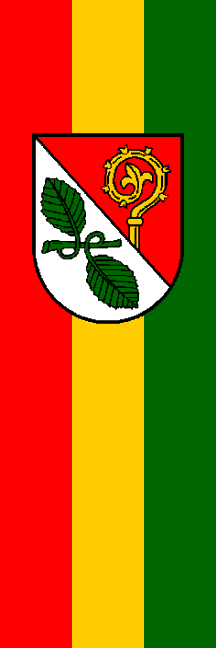 | Description of arms (German): | Schräg geteilt; oben in Rot eine goldene, aus der Teilungslinie wachsende Krümme eines Bischofsstabes, unten in Silber ein grüner, quergestellter Buchenast mit zwei grünen Blättern, je eines von unten nach oben und von oben nach unten gebogen. |