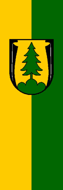 | Description of arms (German): | Zwischen von zwei schwarzen, gestürzten und mit den Schneiden einwärts gekehrten Senseneisen gebildeten Flanken in Gold auf einem grünen Dreiberg ein grüner Nadelbaum. |