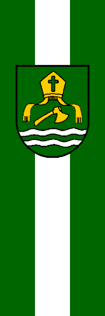 | Description of arms (German): | In Grün über einem silbernen Zwillings-Wellenbalken eine goldene, mit einem grünen, lateinischen Kreuz bestickte Mitra; zwischen deren goldenen, nach beiden Seiten herabhängenden Bändern ein goldenes, schräglinks gestelltes Beil. |